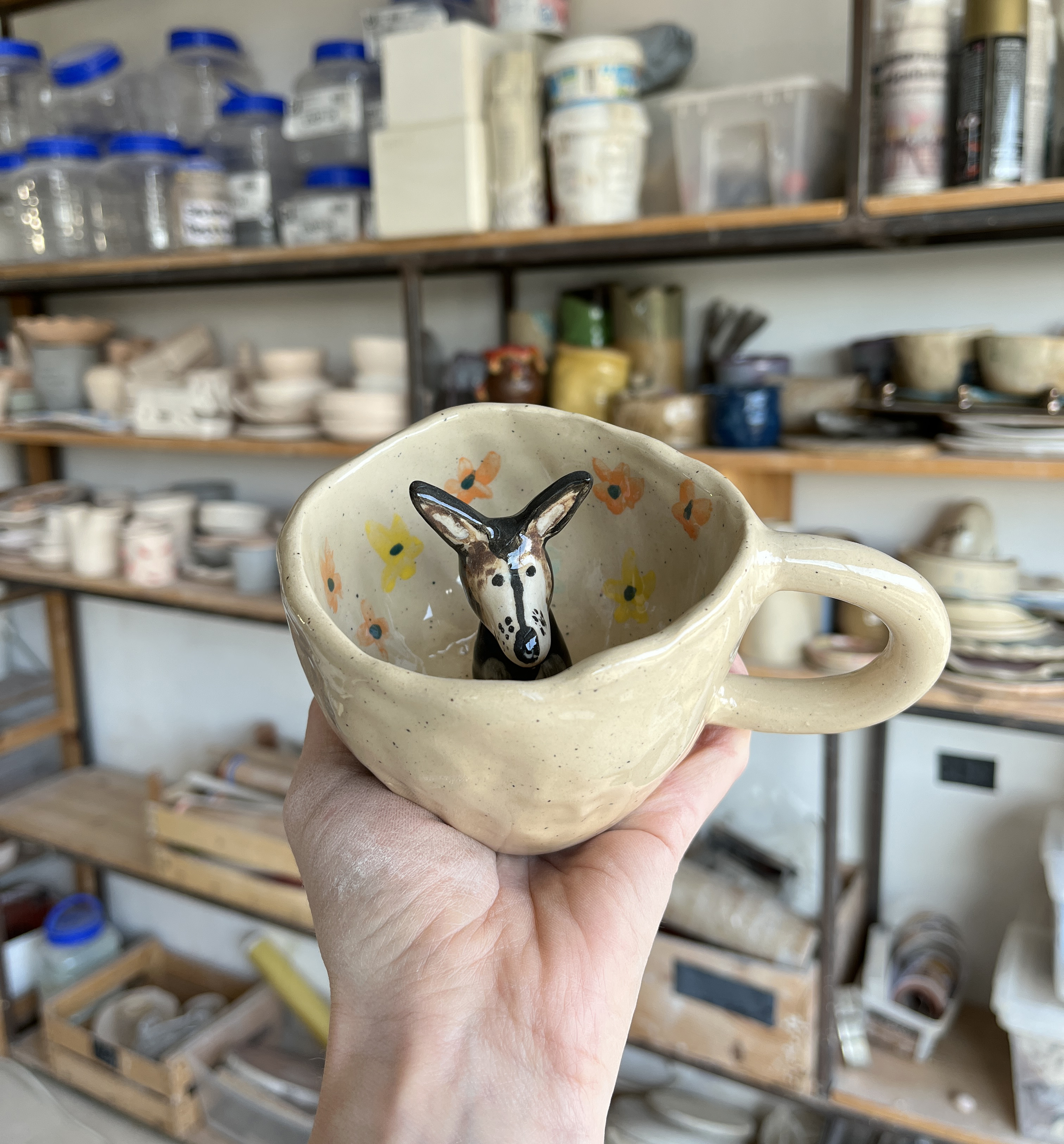 During this workshop you will learn the basic hand building technique (pinching) and create a personalised peekaboo mug with you pet inside!
